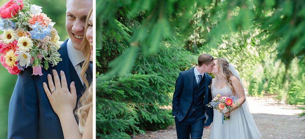 trinity tree farm wedding venue in issaquah washington bride and groom portraits in trees